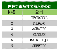 Due to its open economy and membership in the South American Common Market Trading Group, some of the top 10 participants in the Paraguayan market are Brazilians. A good example is Tecnomyl, the largest participant to date, with a market share of about 30%.